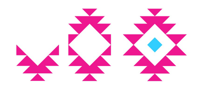 讓我們研究一下在紡織品和被子模式中使用的常見設計。將三個三角形排列在一起,使其角落接觸在中間添加第四個三角形以在頂部創(chuàng)建平坦邊緣。再添加四個三角形,交替方向,從而在中心形成一個直角。在另一側(cè)添加兩個倒置的三角形以擴展該角度。