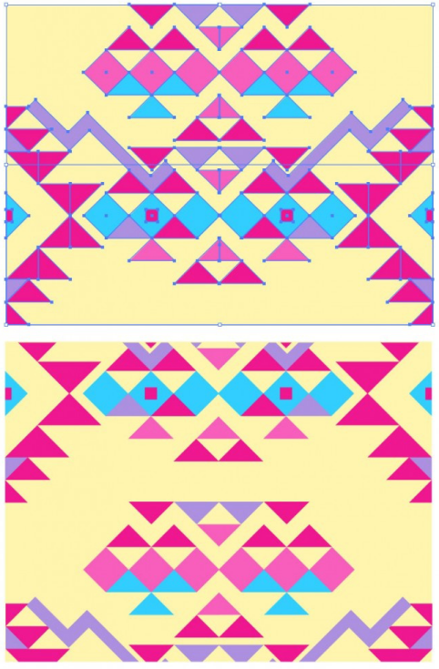 小組激活你的模式元素。在設計的最右側(cè)使用矩形重疊您的組。確保將矩形邊緣與設計中心對齊。選擇矩形和組,然后在“路徑查找器”面板中單擊“分割”。刪除與矩形重疊的所有對象。