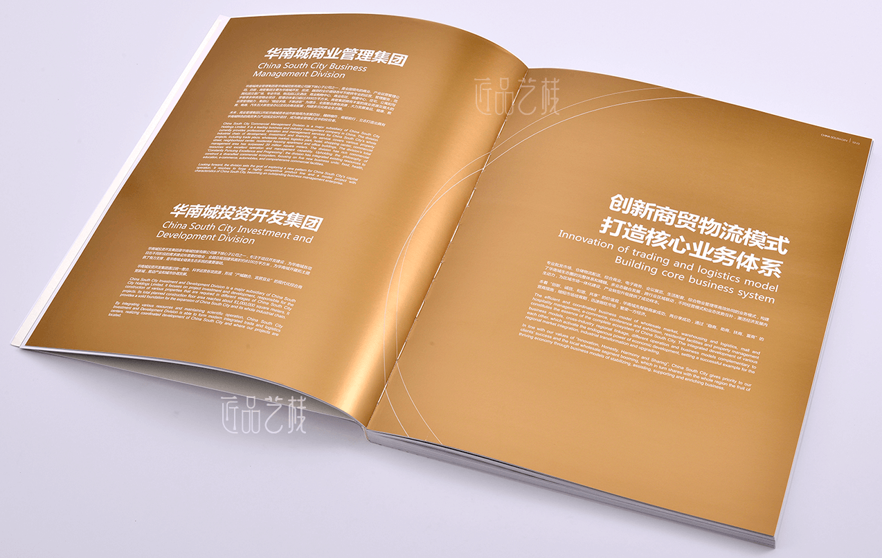 華南城控股有限公司是一家在香港聯(lián)合交易所上市的綜合商貿(mào)物流企業(yè)是中國規(guī)劃、建設(shè)、運營大型綜合商貿(mào)物流中心的領(lǐng)航者,在此畫冊印刷,針對業(yè)務(wù)涵蓋多領(lǐng)域等生態(tài)系統(tǒng)特征,采用專金、專銀等印刷,以及特種紙、燙紅金等特色工藝搭配,準確的體現(xiàn)出華南城集團的品牌實力和宣傳特色。