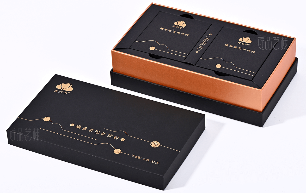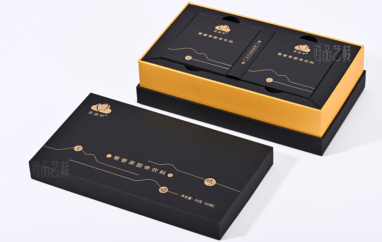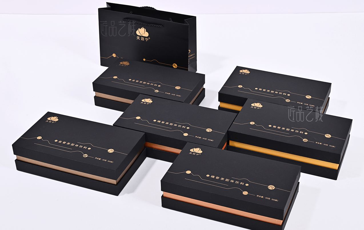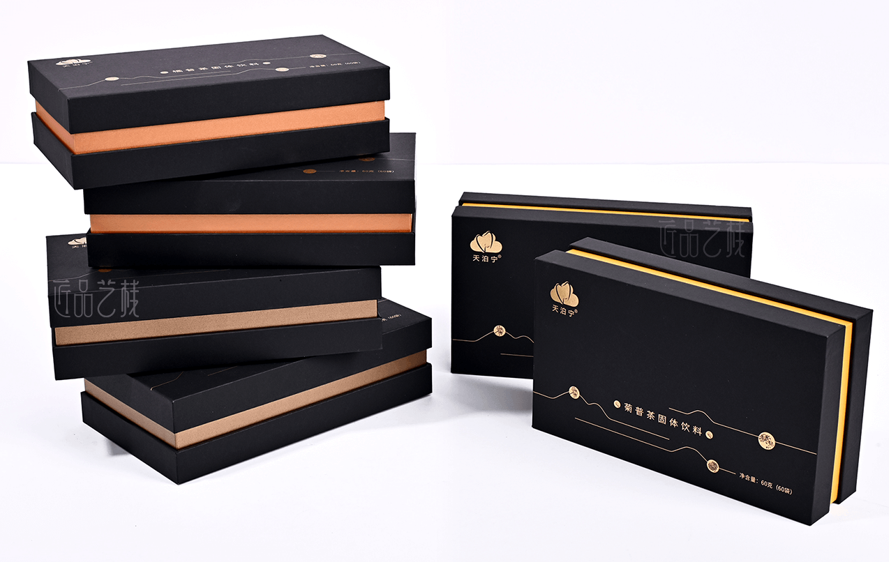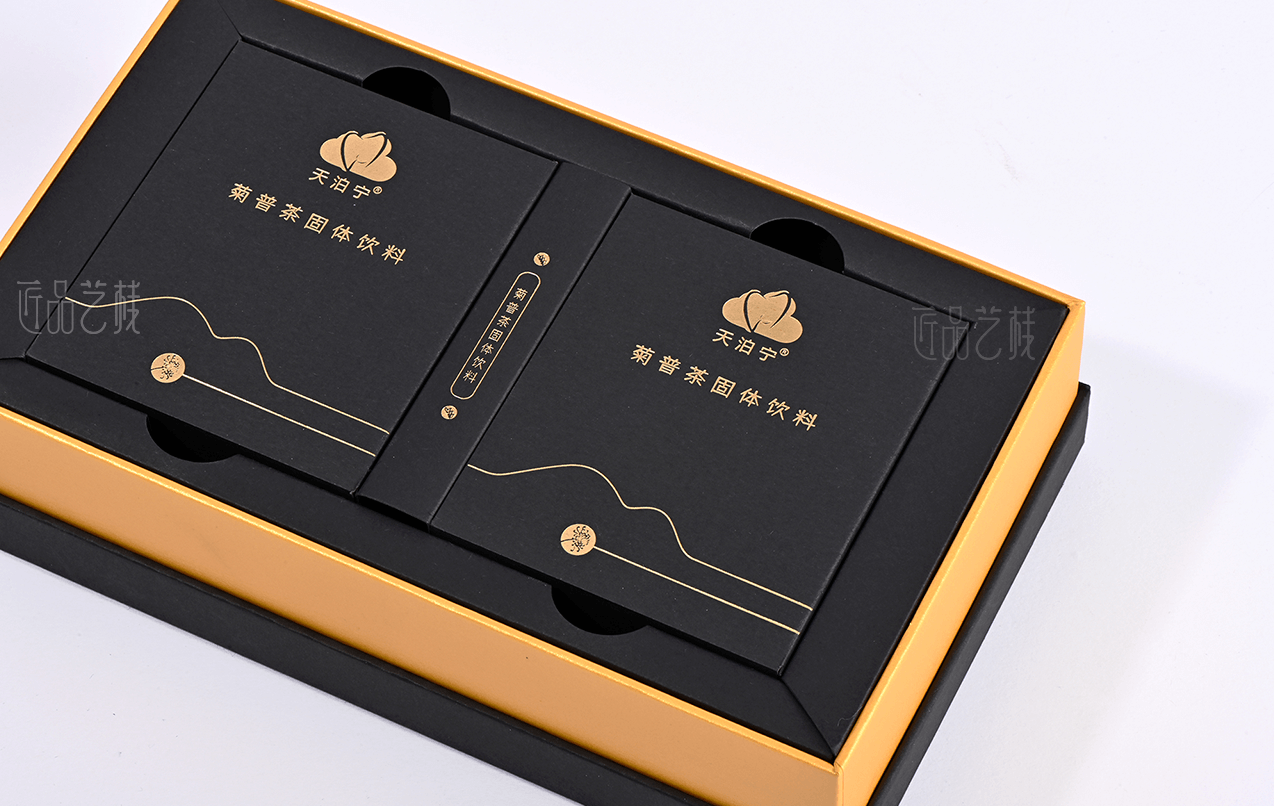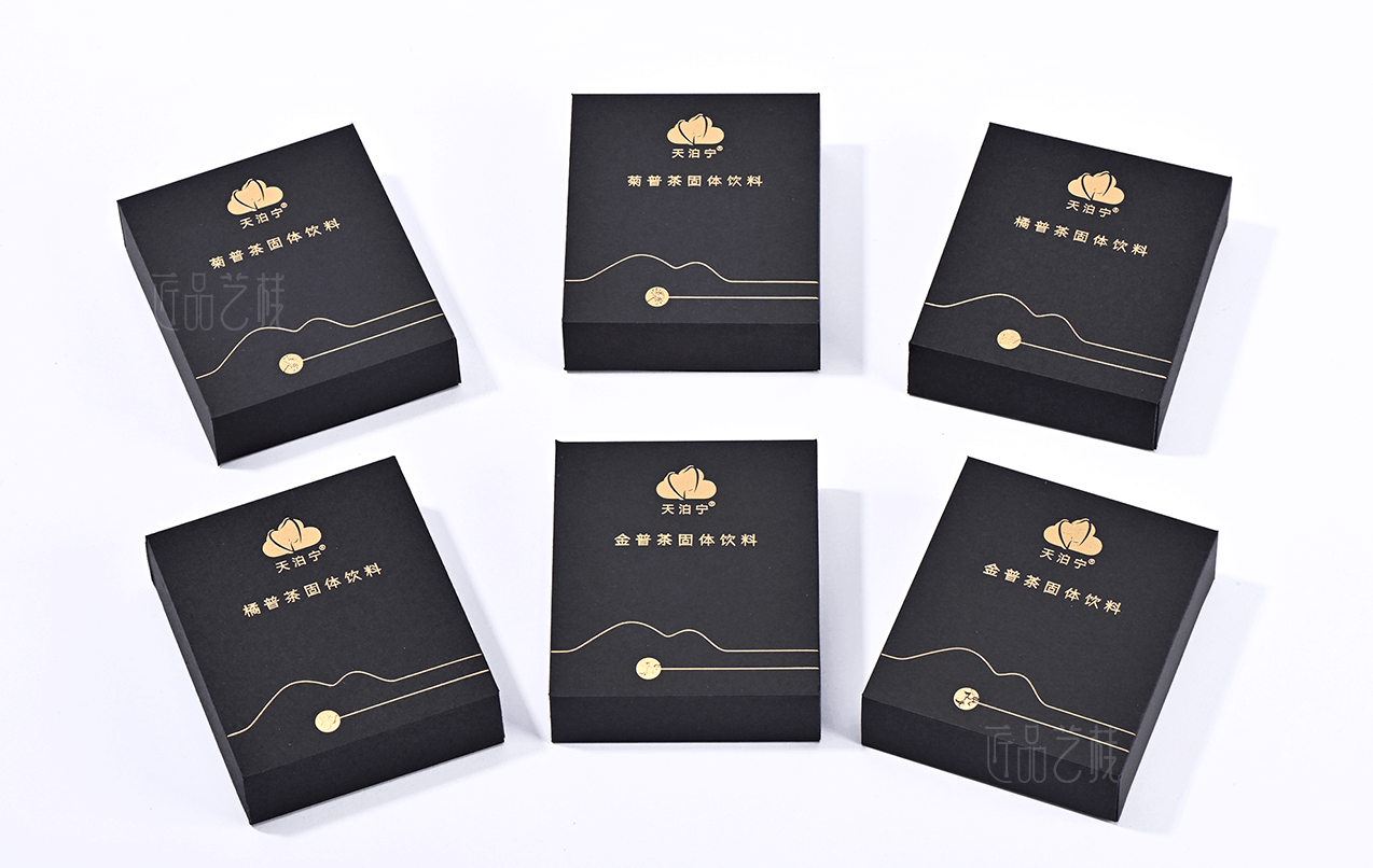 天泊寧茯苓普洱茶粉固體飲料品牌,選用云南高海拔優(yōu)質(zhì)大葉種普洱茶、上等優(yōu)質(zhì)茯苓為原料,經(jīng)現(xiàn)代生物技術(shù)加工而成。在其系列產(chǎn)品包裝盒設(shè)計(jì)印刷中,匠品藝棧采用普洱茶的黑色為統(tǒng)一主色,并根據(jù)不同產(chǎn)品分類采用不同顏色腰條為區(qū)分,使其整個(gè)系列產(chǎn)品包裝盒,既能形成統(tǒng)一的品牌視覺形象,同時(shí)又區(qū)分出鮮明的產(chǎn)品特色。