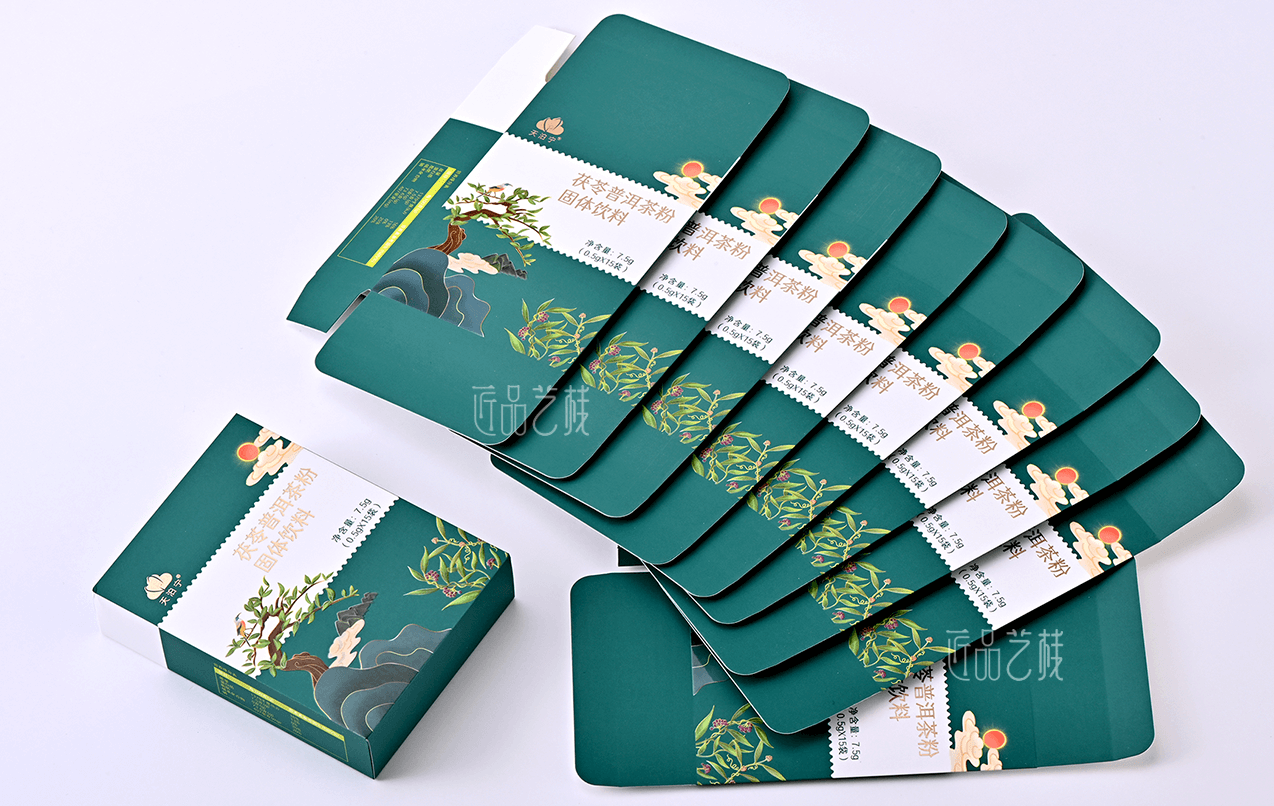 天泊寧普洱茶粉固體飲料,經(jīng)現(xiàn)代生物技術(shù)加工,科學保留普洱茶和獲苓的有益成分科學配比,是一款真正原生態(tài)、時尚快捷、創(chuàng)新型健康固態(tài)飲品。在該品牌包裝盒設計中,我們采用原創(chuàng)插畫方式設計,搭配進口特種紙卡紙,及精制的表面和成型工藝;打造又一款從設計到印刷整體方案解決優(yōu)秀包裝盒定制案例。