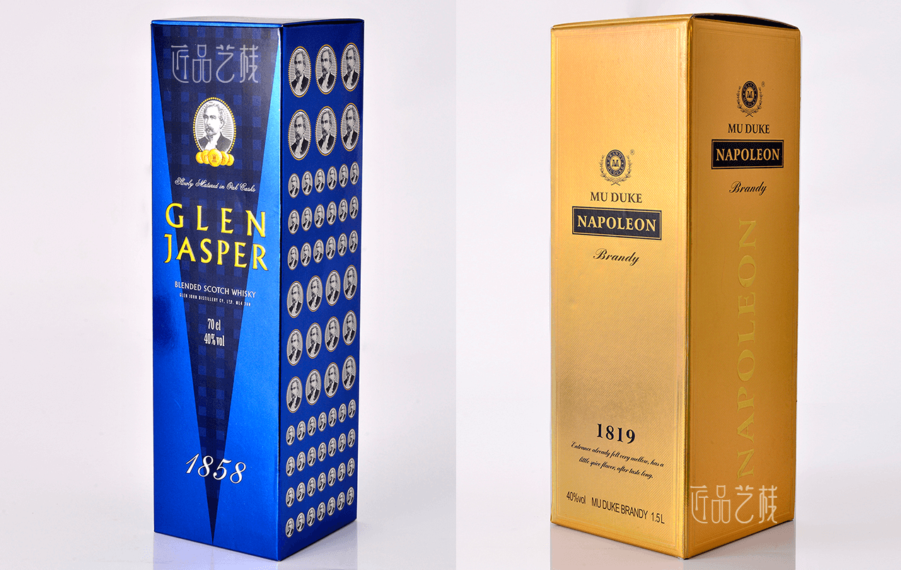 作為白蘭地XO,以及紅酒店品牌,對其產品包裝酒盒也是相應重視的。對XO酒盒、紅酒包裝盒印刷定制,亦是佳潤隆包裝&匠品藝棧擅長項目之一,多年來曾與多家洋酒、紅酒等經營企業(yè)合作打造高端、新穎酒盒,采用UV印刷機印刷,金銀卡紙張、逆向UV、對裱卡盒、精裝等工藝,為優(yōu)秀洋酒、紅酒等企業(yè)打造高端酒盒包裝,提升品牌價值。