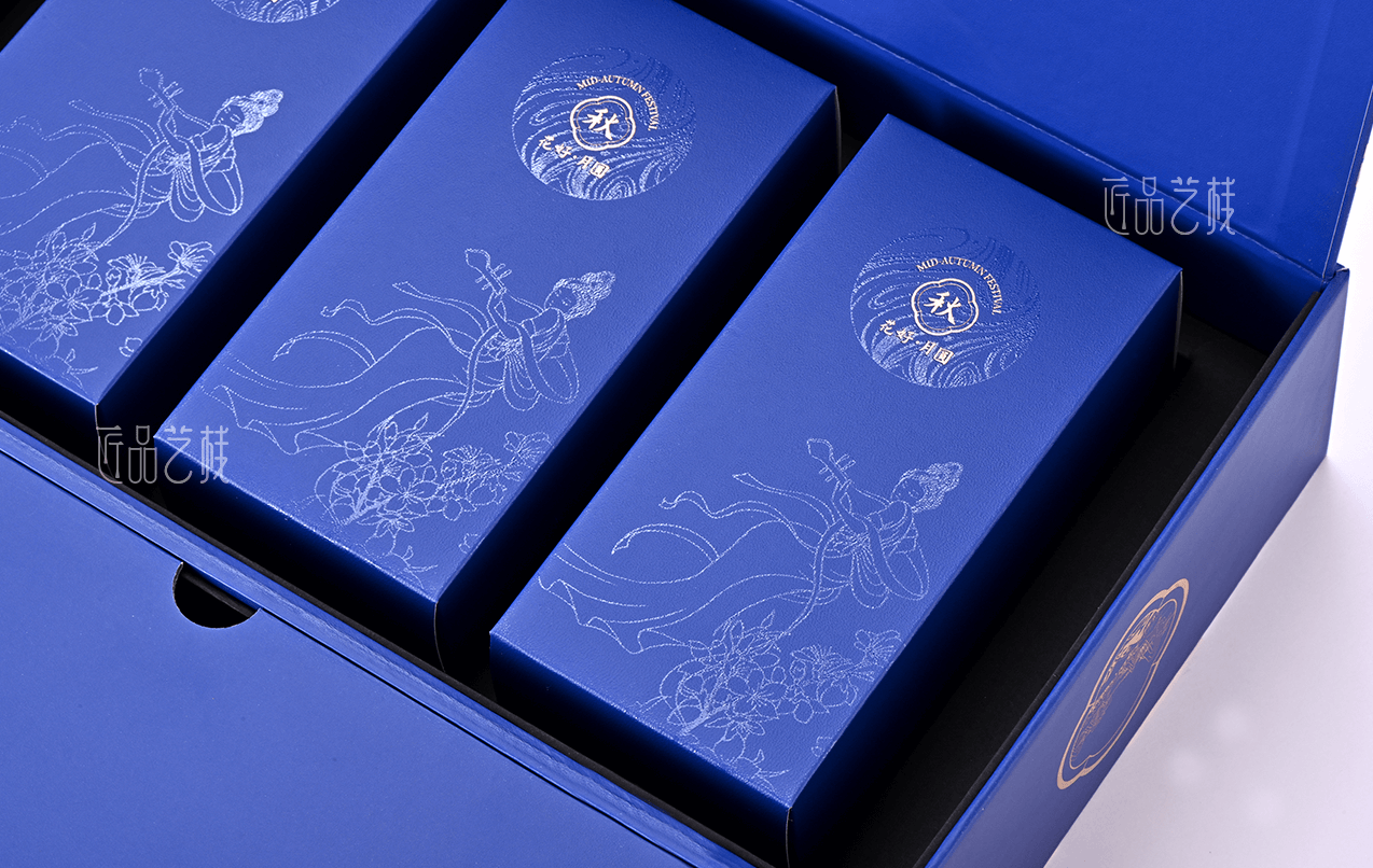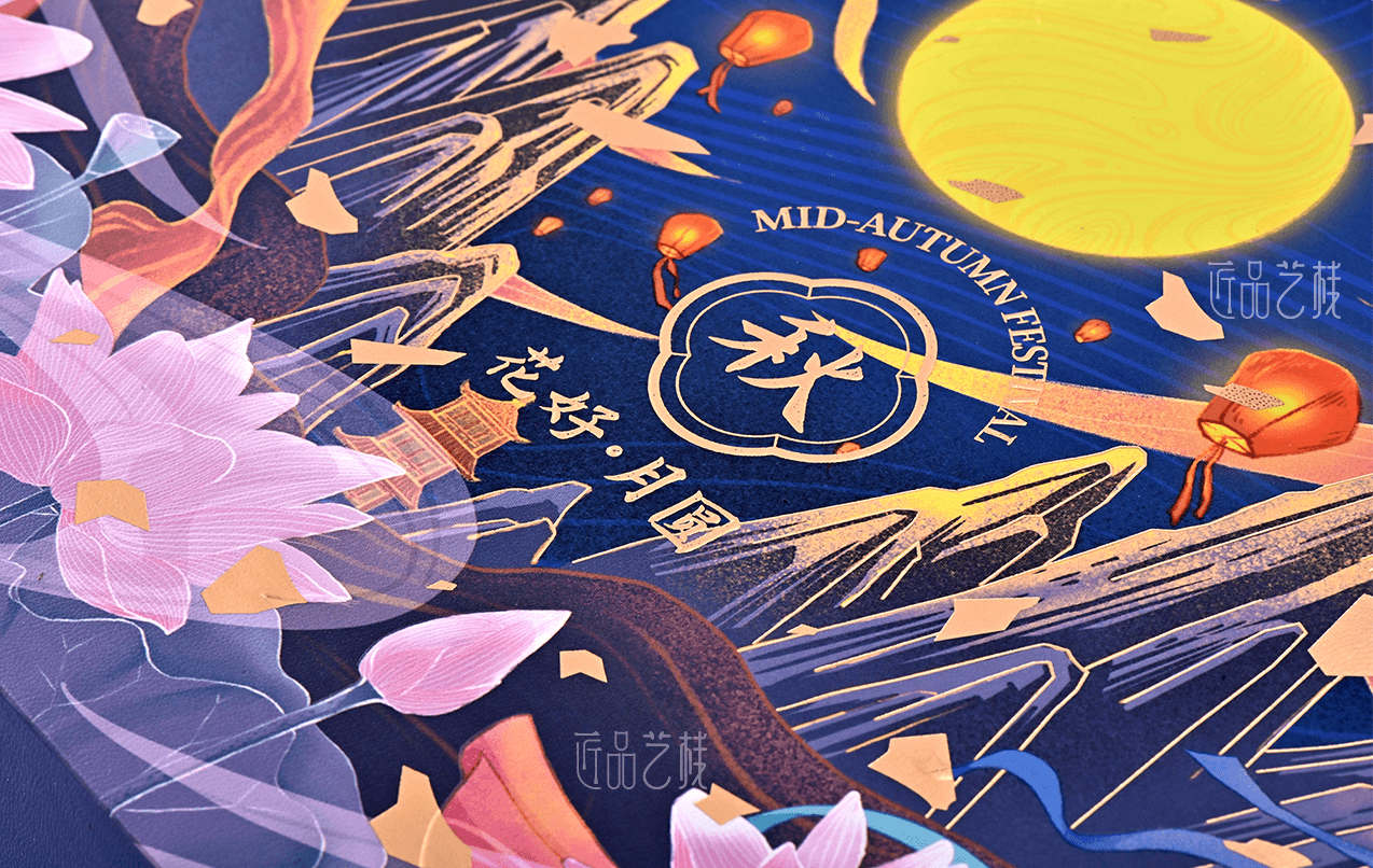 中秋,是我國四大傳統(tǒng)節(jié)日之一,花好月圓文創(chuàng)禮盒,是為中秋佳節(jié)原創(chuàng)的一款創(chuàng)意定制禮盒,其采用國潮風格的原創(chuàng)插畫設計,創(chuàng)新的禮盒形結構,運用特種紙張印刷,以及燙印、逆向UV等精制工藝,使花好月圓禮盒成為文創(chuàng)創(chuàng)意領域又一支獨秀,同時提供品牌的送禮價值和品質(zhì)形象。