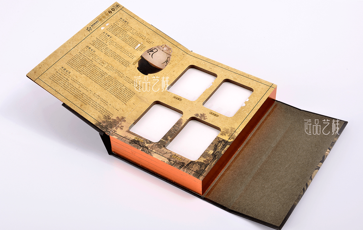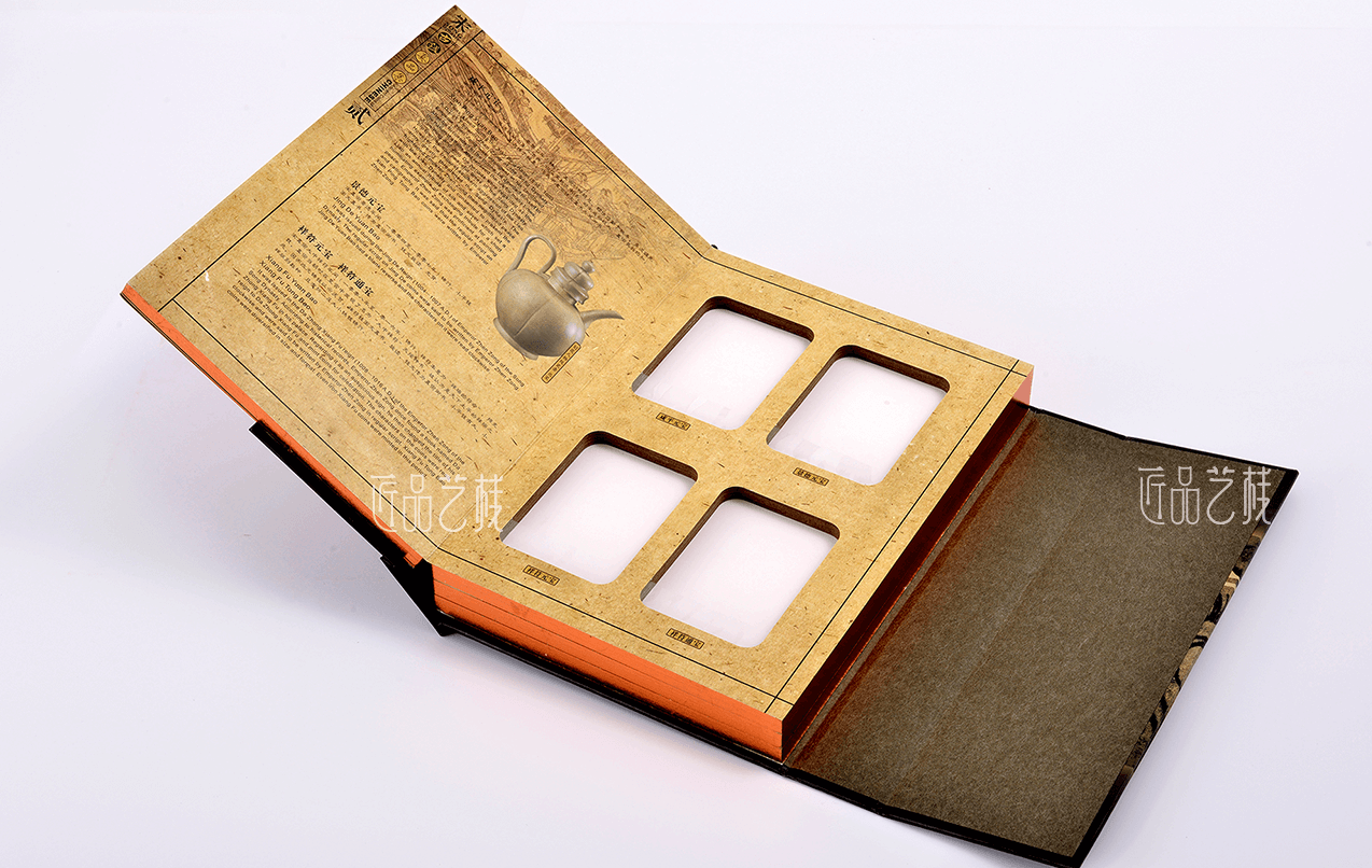 古錢真品集包裝盒套裝定制,是一款專為古錢幣收藏而定制的包裝盒,采用蝴蝶活頁精裝的創(chuàng)意結構,以中國古典元素結合雙開門的形式,以及金邊燙印等工藝,使整個包裝盒呈現(xiàn)出古典、奢華和濃濃的歷史感,體現(xiàn)出所收藏古幣的高端品質感和文化價值。