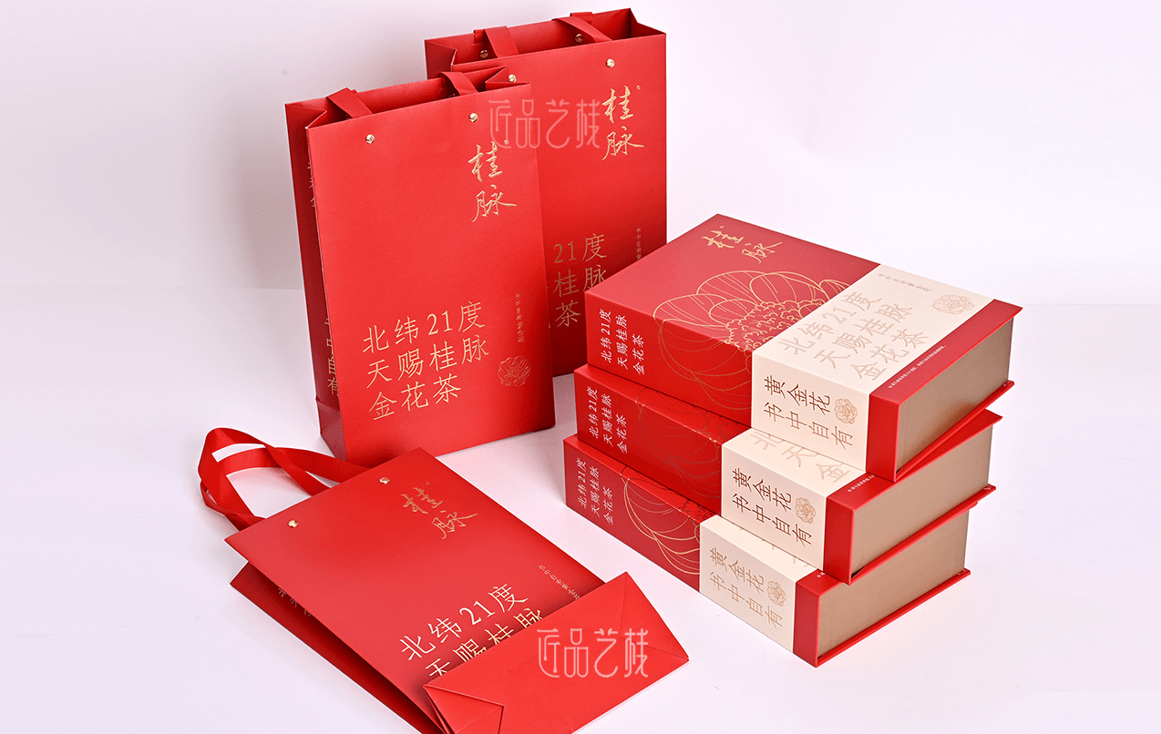 本產(chǎn)品包裝盒由佳潤隆包裝印刷&匠品藝棧,為洪福堂健康食品,桂脈金花茶,源自北緯21度,新資源食品提供,從包裝盒結(jié)構(gòu)規(guī)劃、平面方案設(shè)計(jì)、材質(zhì)工藝規(guī)劃和手提袋、說明書等整套方案設(shè)計(jì)印刷,在比原有包裝盒將近節(jié)省一半制作成本的同時(shí),大力提高相應(yīng)產(chǎn)品的溢價(jià)能力和銷售利潤。