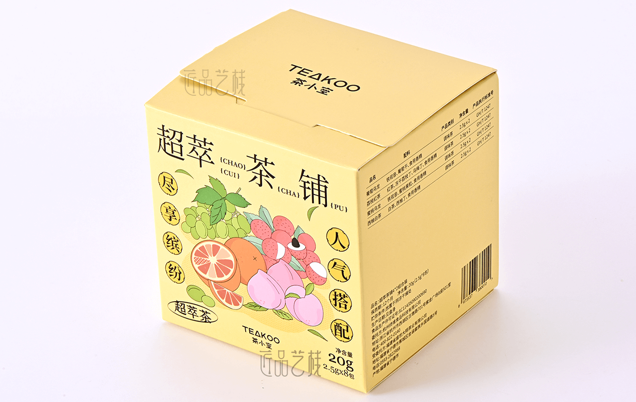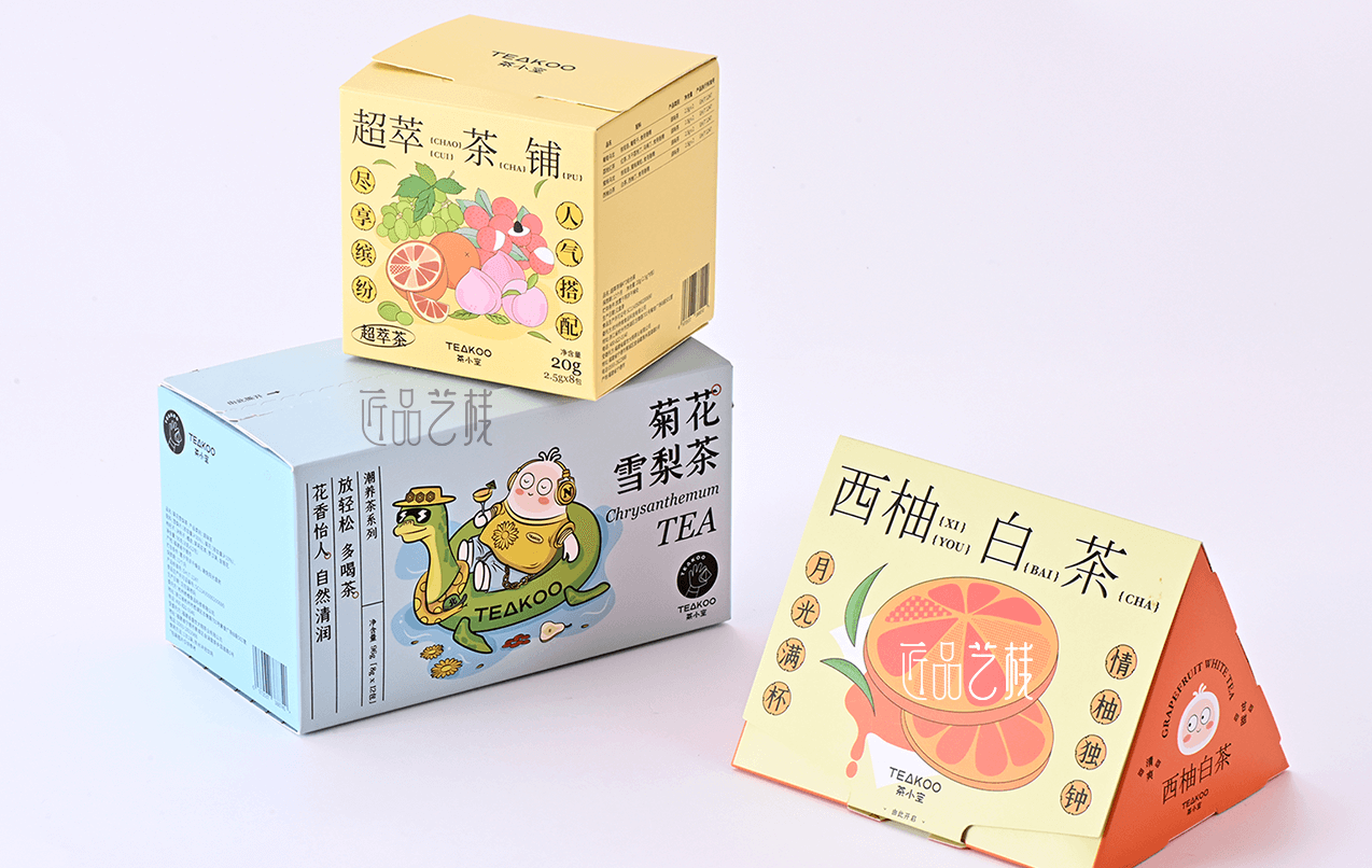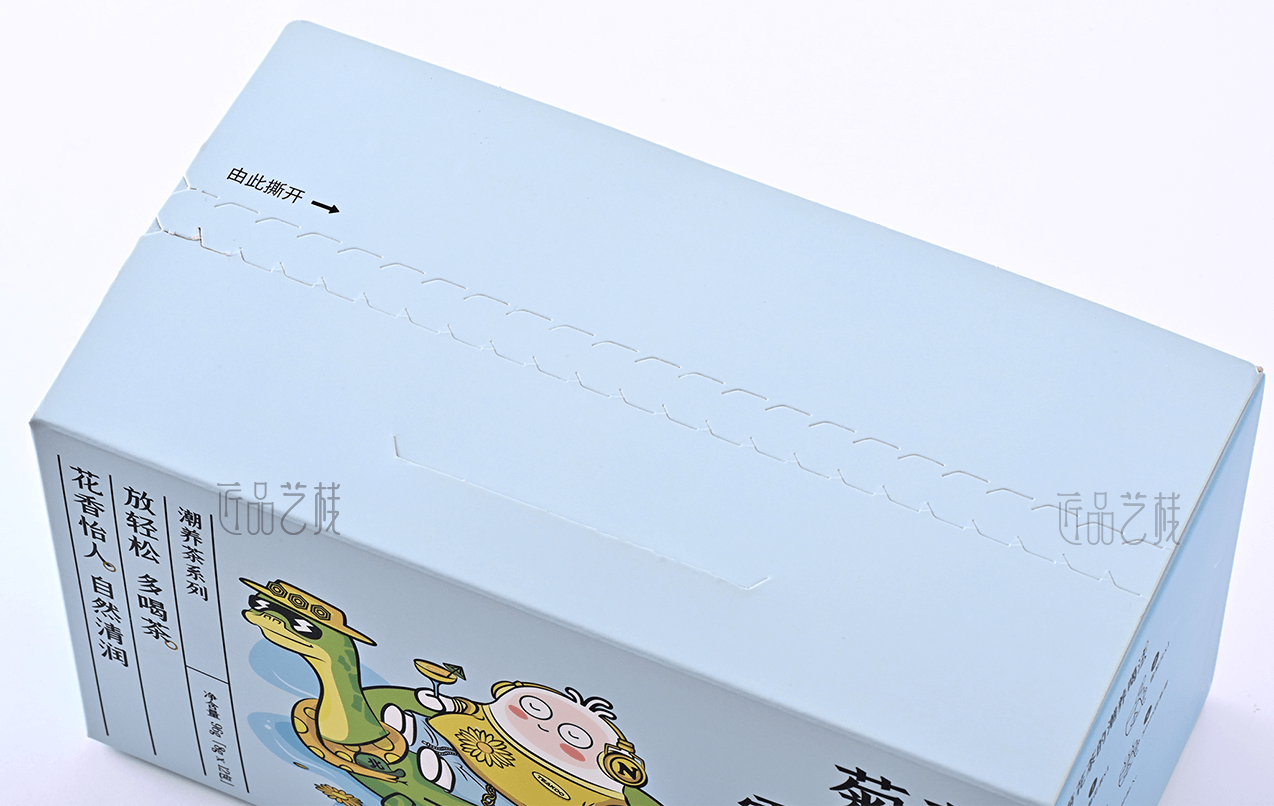 茶小寶是創(chuàng)新網(wǎng)紅級健康茶品牌企業(yè),通過不斷創(chuàng)新技術(shù)與互聯(lián)網(wǎng)支撐全茶產(chǎn)業(yè)鏈整體轉(zhuǎn)型升級發(fā)展,在其產(chǎn)品包裝盒制作中,采用新穎的卡盒結(jié)構(gòu),優(yōu)質(zhì)的品牌卡紙和海德堡設(shè)備印刷,自動粘盒機組合,打造新潮、時尚的卡紙彩盒茶葉系列品牌包裝盒。