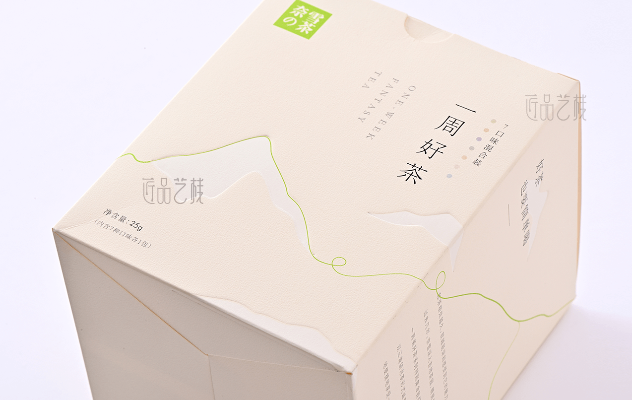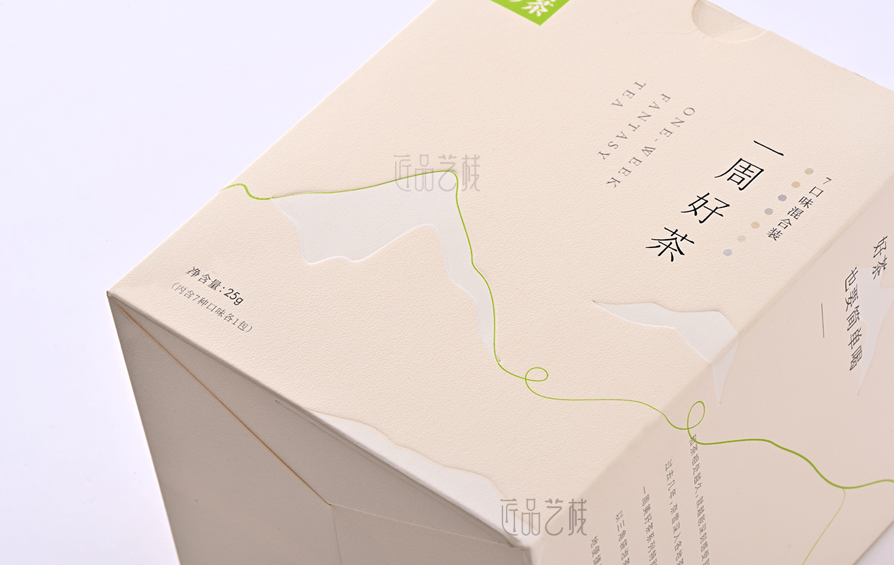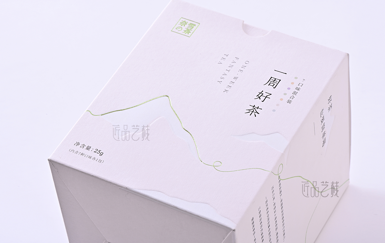 一周好茶,是奈雪的茶特別選擇了深受年輕消費者喜愛的花茶品類,以杯杯專屬新意不重樣的理念,帶來更加專注且豐富的產(chǎn)品升級,在其產(chǎn)品包裝紙盒的訂做上,亦采用簡約新潮的創(chuàng)新紙張,配合簡約的印刷色彩、燙金和凸印工藝,使其呈現(xiàn)出現(xiàn)代簡約、深受年輕消費者喜愛的包裝風(fēng)格。